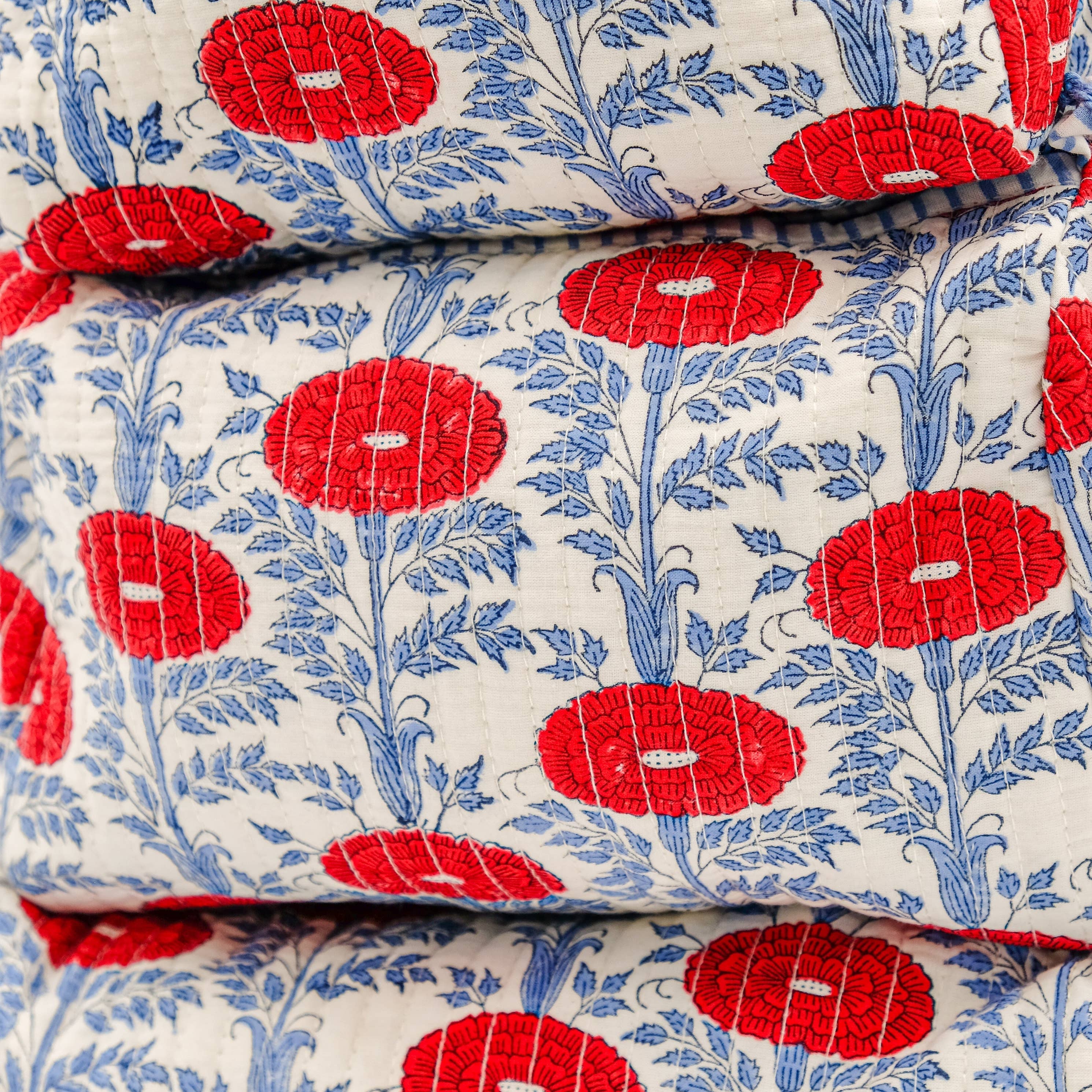 Take a little color and joy where ever you go. These chic hand block printed cotton wash bags come in three sizes with a wipeable liner to suit your cosmetic and travel needs. Each bag has four internal pockets to store all your trinkets.