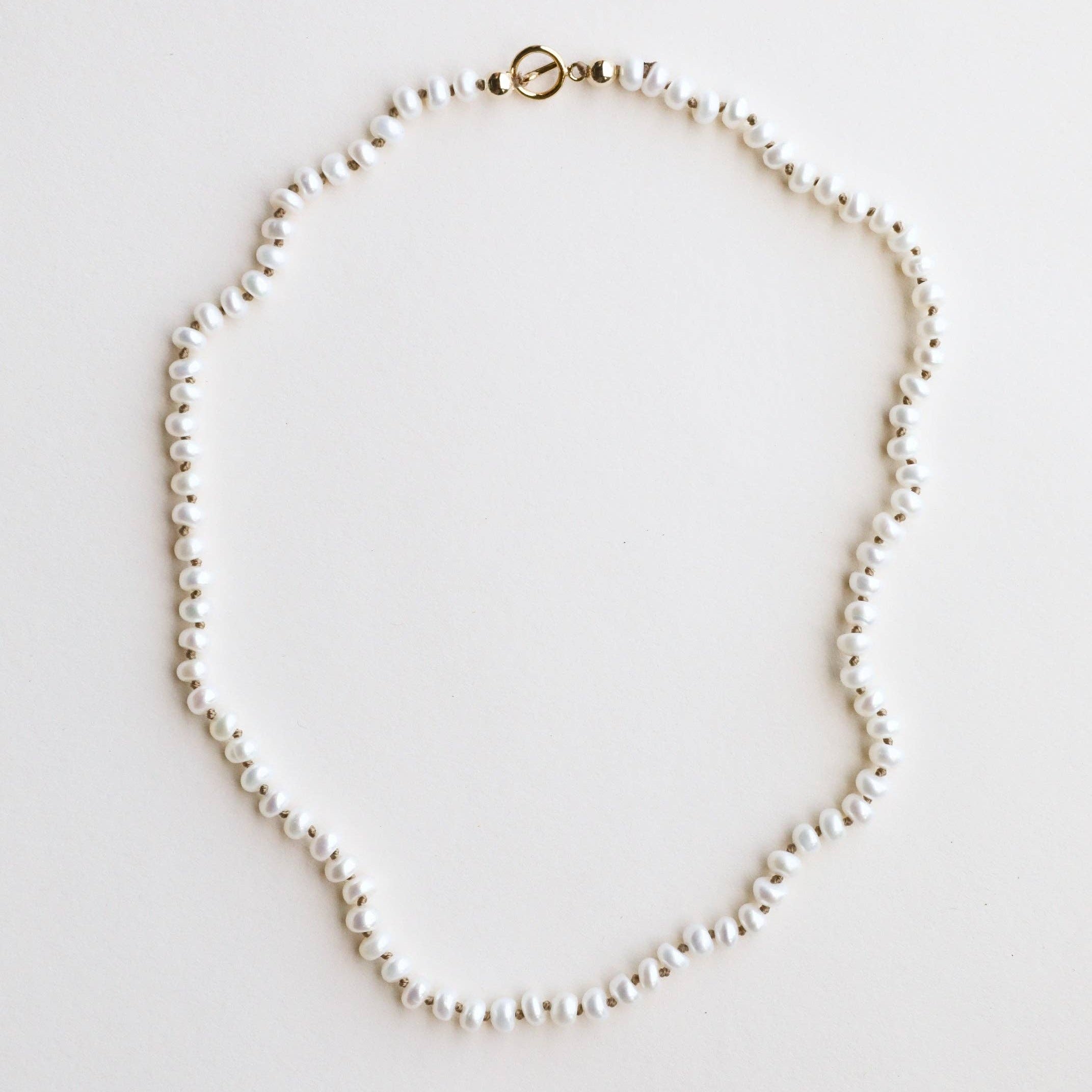 Add a tiny touch of glam to your natural lifestyle. Worn alone or paired in your stack, our Natural Pearl + 14K Gold Filled Beaded Necklaces are handmade by the Sea, with warmth and sunlight.