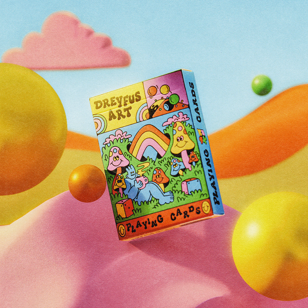 It won't take long to appreciate why Dreyfus' joyful art has found passionate fans around the world. Printed by the U.S. Playing Card Co. and housed inside a vibrant letterpress-print tuck box. Sealed with a rainbow foil sticker.