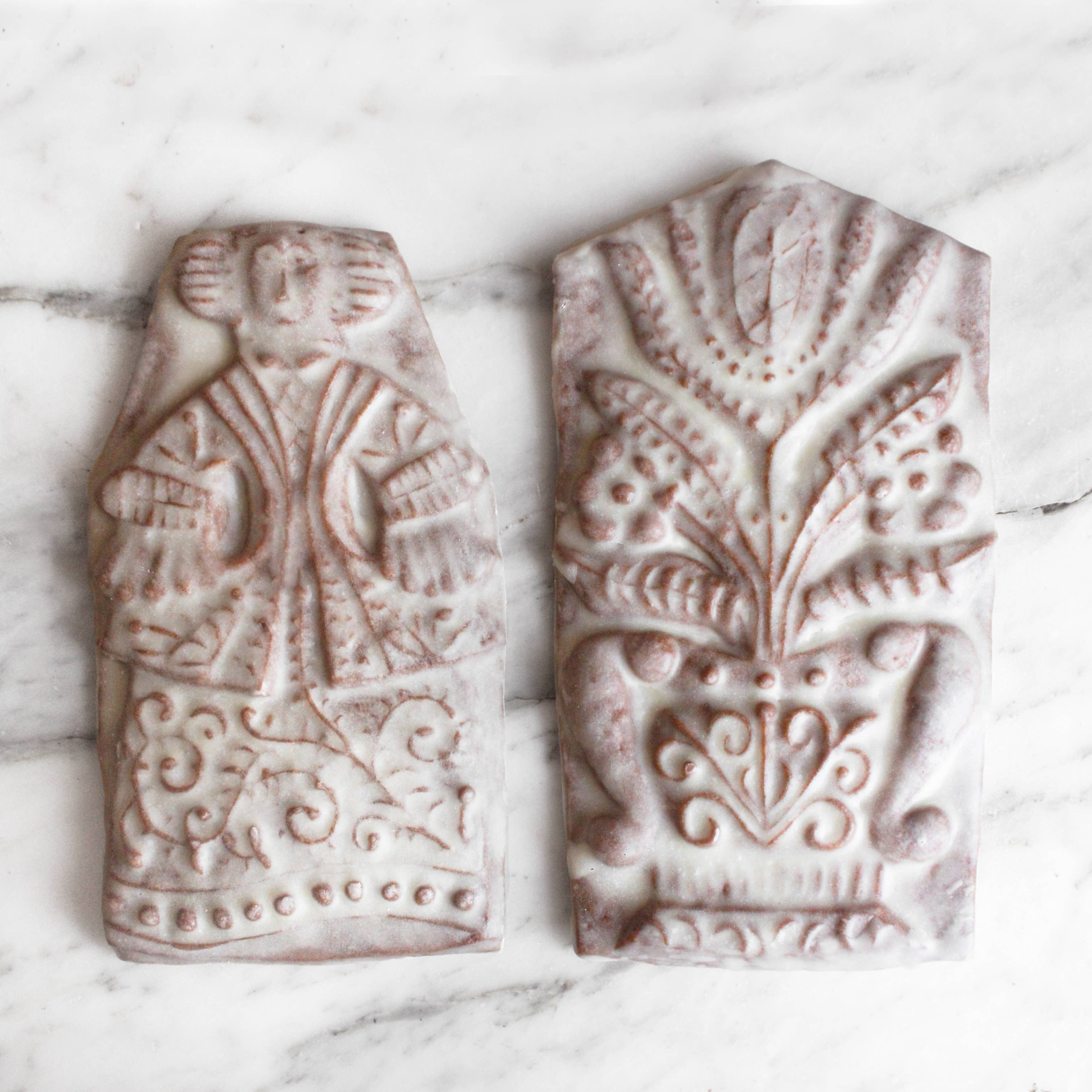 Slightly spicy, molasses-forward with delicate interior, this glazed gingerbread cookie is a favorite among staff & visitors alike. This cookie board has two moulds: The naturalistic "Tulip," and the "Maiden." You will receive one style, at the baker's discretion.