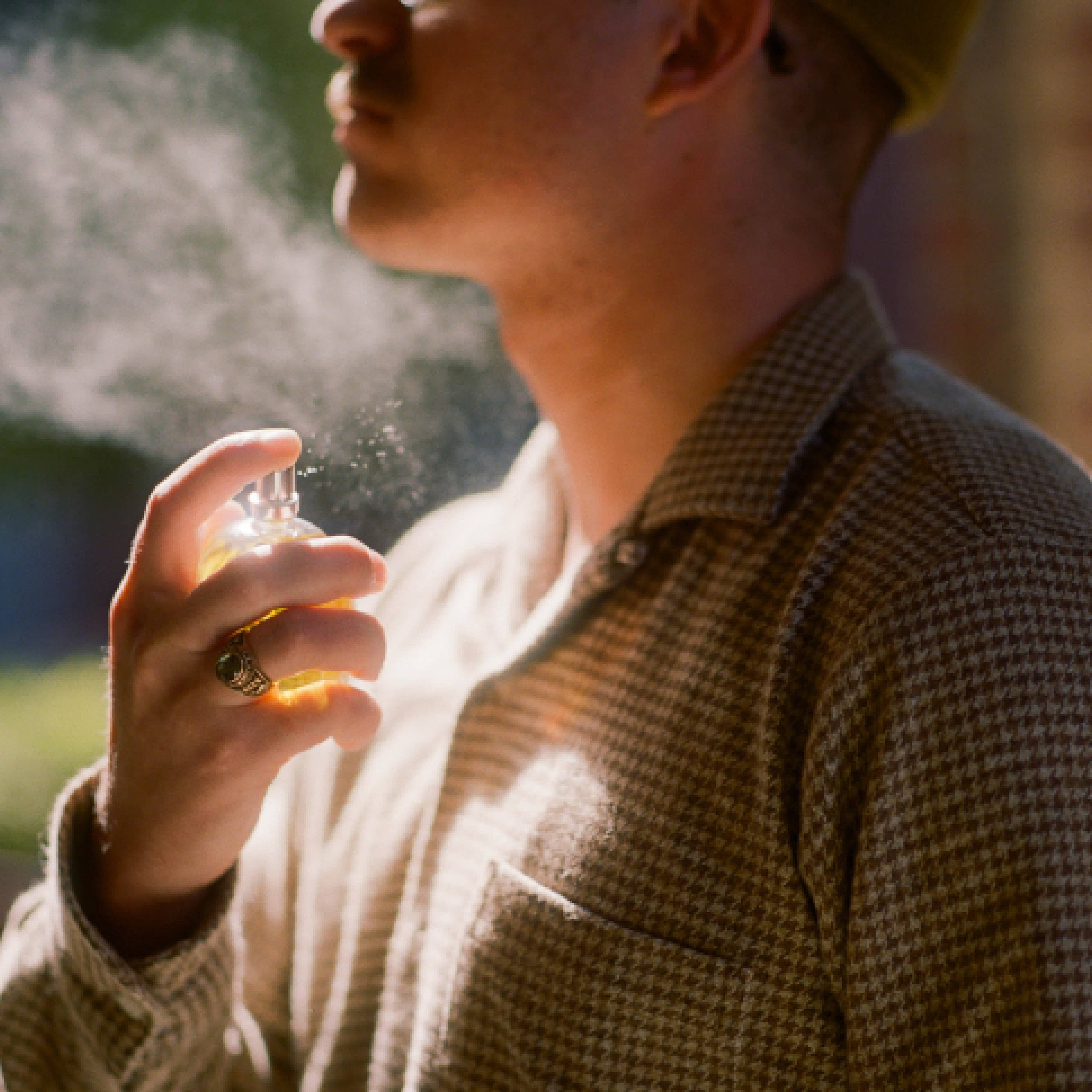 Long-lasting, alcohol-based formula. Paraben-free, phthalate-free, and dye-free. 1.7 fl oz / 50 ml glass spray bottle. Made in the USA.