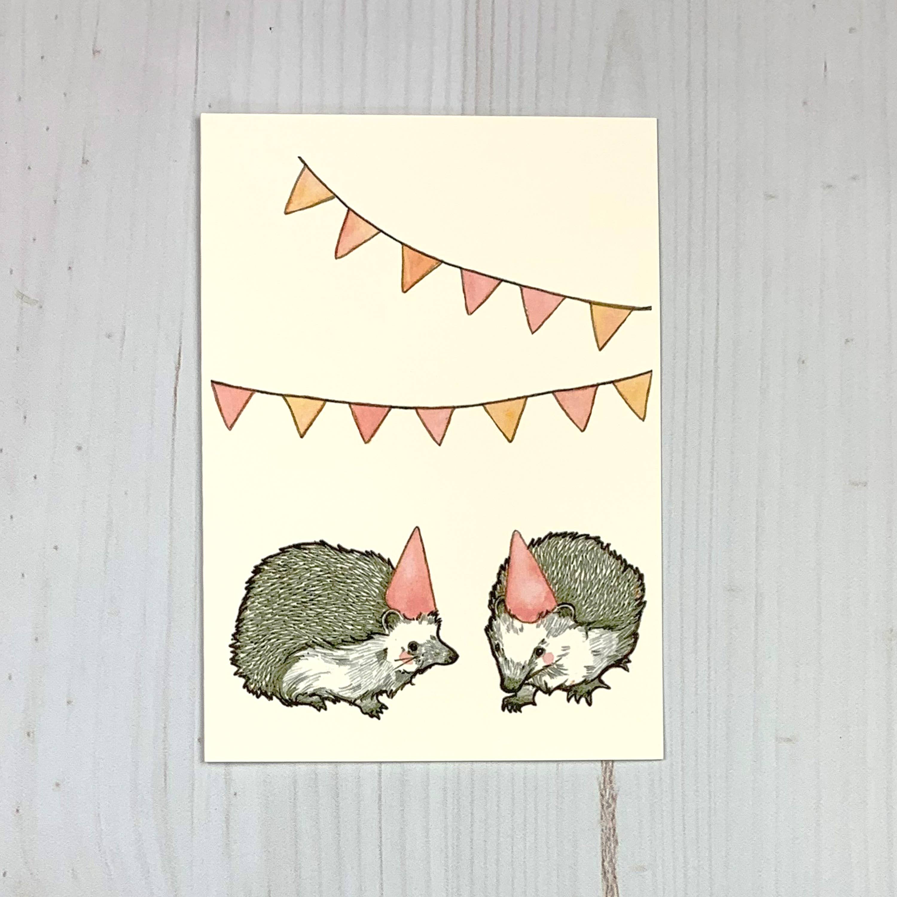 A 5"x7" notecard printed with a watercolor and graphite cardinal heart illustration using archival inks on recycled linen notecards. Each card comes with a 100% recycled envelope and packaged in a plant-based sleeve.