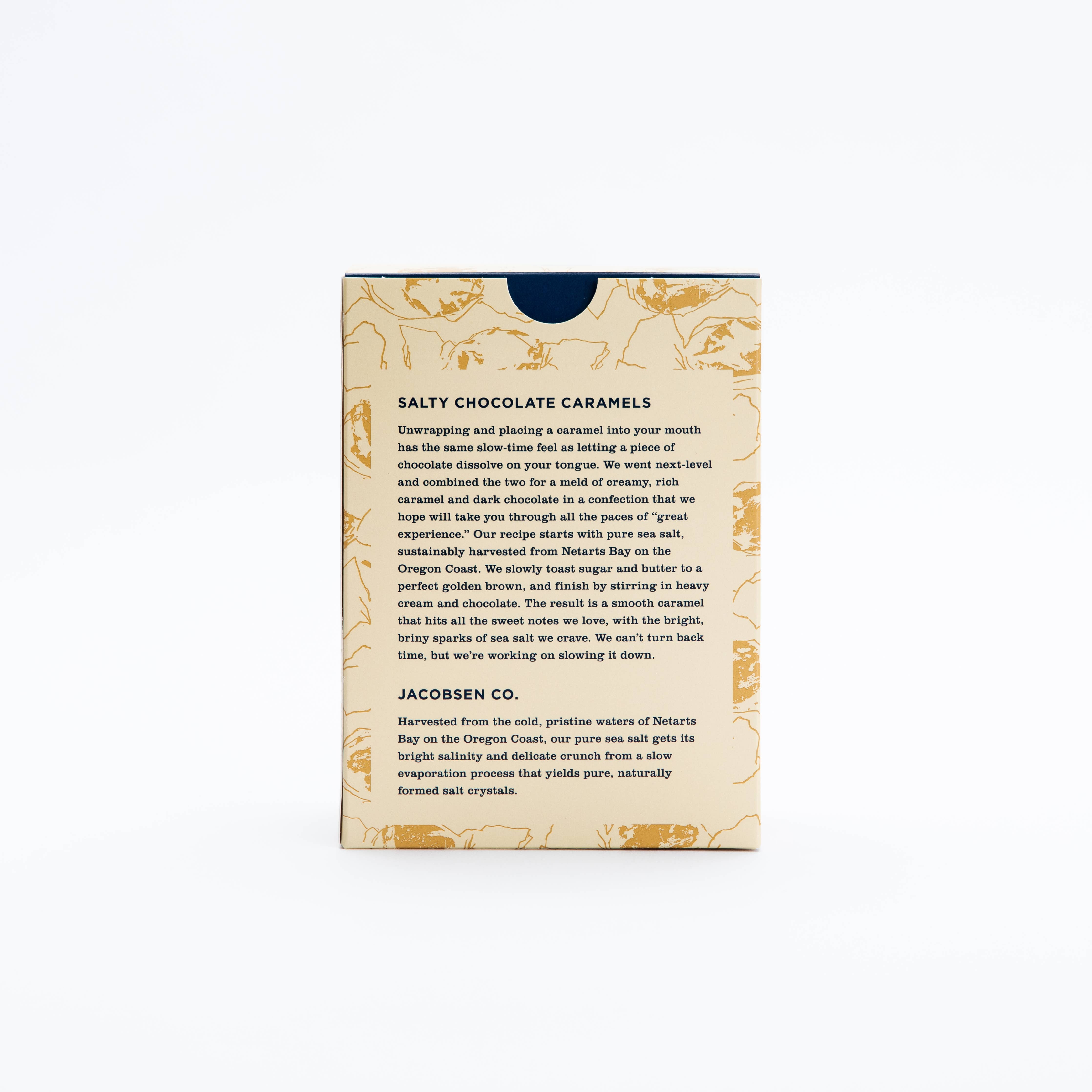 Unwrapping and placing a caramel into your mouth has the same slow-time feel as letting a piece of chocolate dissolve on your tongue. We went next-level and combined the two in a recipe that starts with pure sea salt harvested from Netarts Bay on the Oregon Coast. We then slowly toast sugar and butter to a perfect golden brown, and finish by stirring in heavy cream and chocolate. The result: a smooth caramel that hits all the sweet notes we love, with the bright, briny sparks of sea salt we crave.