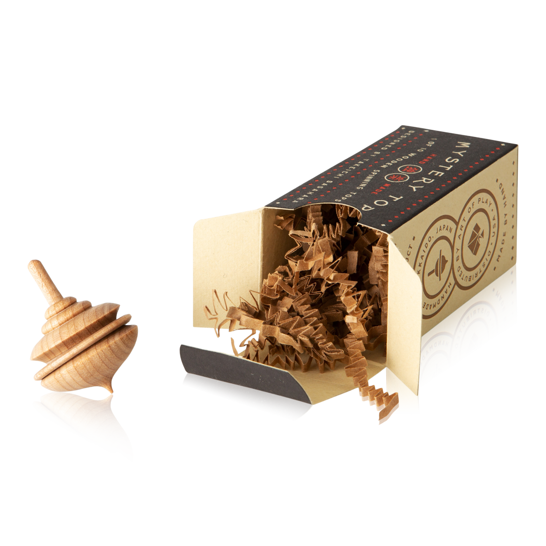 This variety of wooden tops honors that rich history with styles ranging from Art Nouveau to Bauhaus to Modern. We wanted to share these lovely little tops with a bit of a twist... Each of the boxes is packed "blind" which means that even we don't know which of the ten different varieties is inside which box. Enjoy the surprise—you won't be disappointed. Designed by Takeichi Sasahara and hand-turned from a variety of indigenous woods on the Japanese Island of Hokkaido.