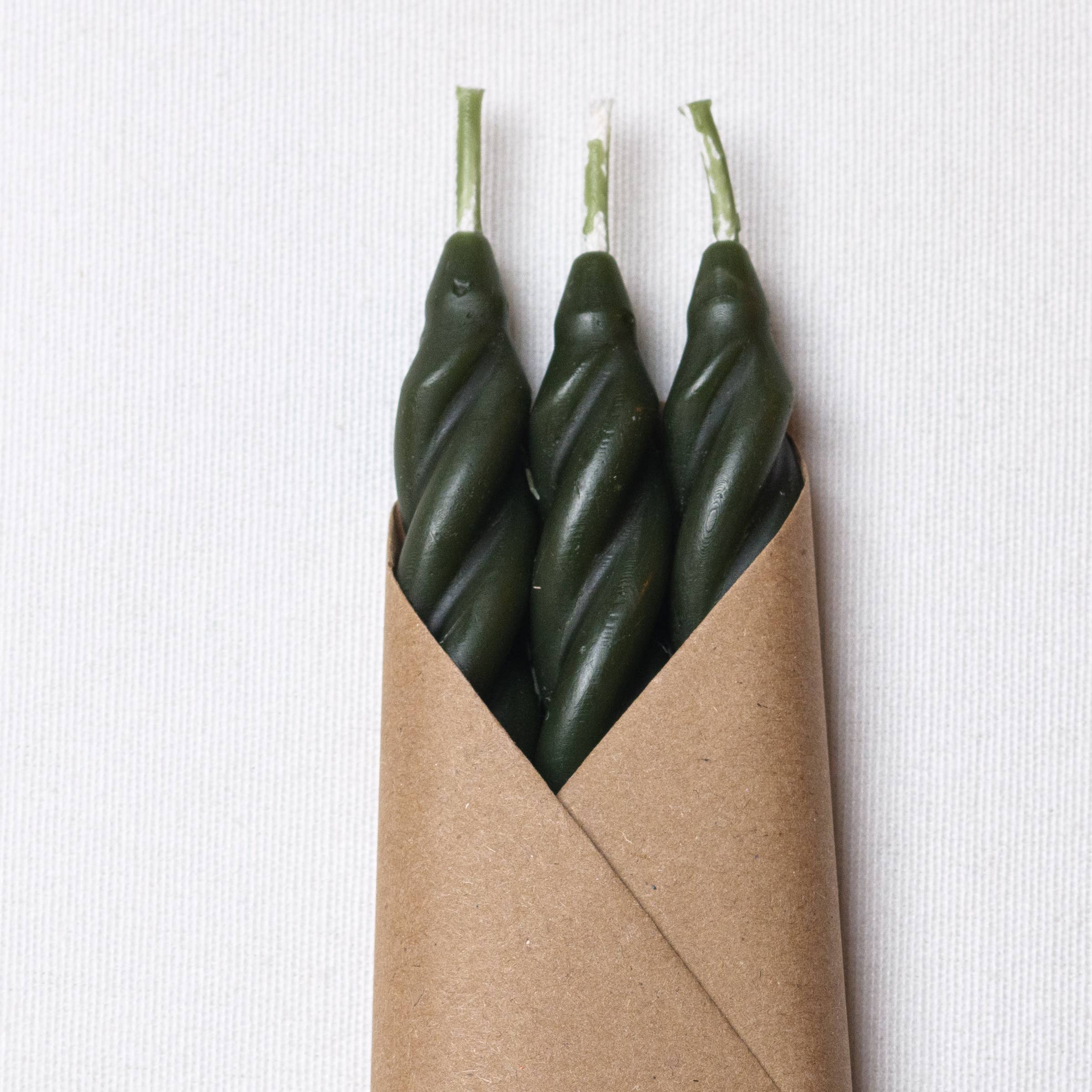 Our Pine Beeswax Taper Candles Set comes with three matching hand-crafted 9” spiral beeswax candles.