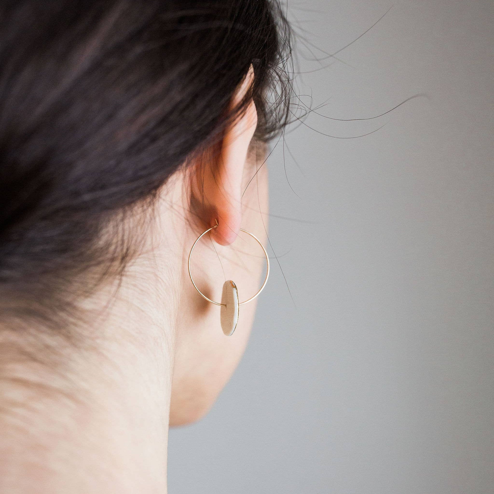 1” hoop, ¾” porcelain piece, Nickel-free, 14K gold-filled hardware. Kiln fired porcelain with 22K gold luster.