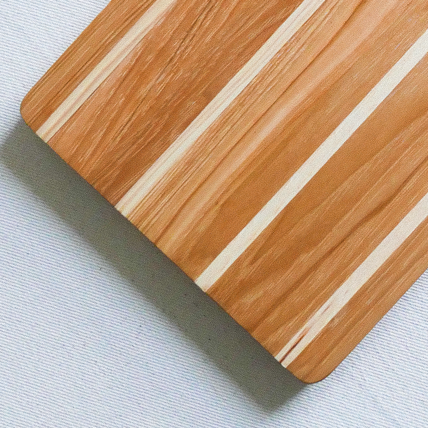 Hickory's durability means this board can handle everything from daily chopping to serving as a rustic platter for your favorite cheeses and charcuterie. Its striped design makes it a standout piece whether hung on a wall or placed on your countertop.